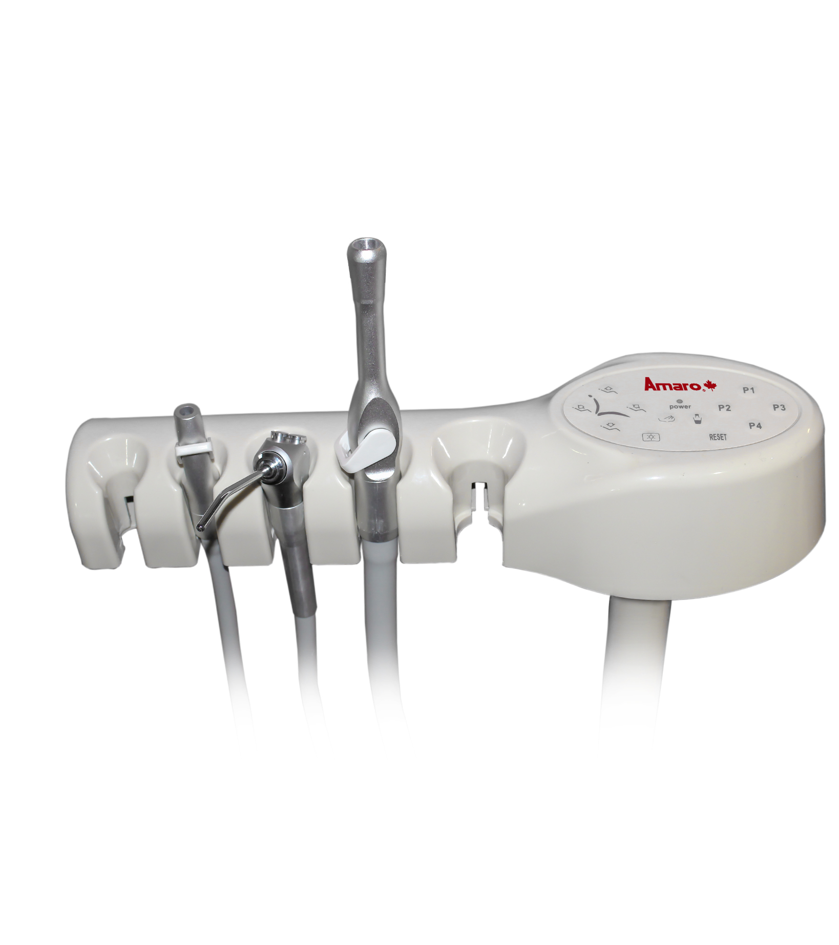 Con un gran diseño ergonómico, el equipo dental Amaro Hydraulic cuenta con la “programación de movimientos”. Esta unidad cuenta con 4 botones en el panel táctil del braket el cual tiene la funcionalidad de grabar 4 posiciones de trabajo programables para así hacer mucho más fácil establecer la posición deseada por el usuario. Ademas cuenta con una bandeja amplia para dejar instrumentos