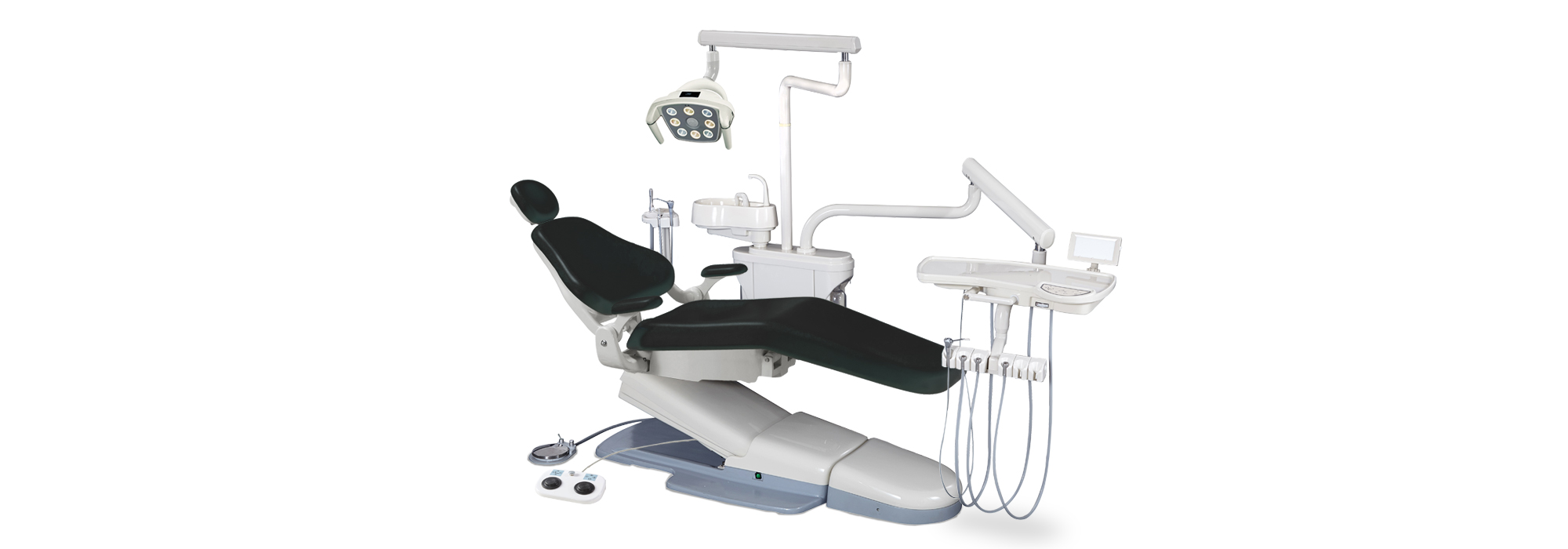 Un diseño ergonómico, compacto, fácil de operar. La instrumentación para el asistente cuenta con componentes resistentes al uso prolongado, un portacanula hemoaspirador para un gran succión, un portacanula eyector compacto sin necesidad de goma. También cuenta con una Jeringa Triple para la asistente. En el touch pad podemos encontrar diferentes opciones, movilidad del sillón, programas, flujos de agua, luz.